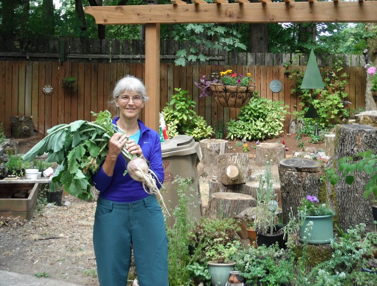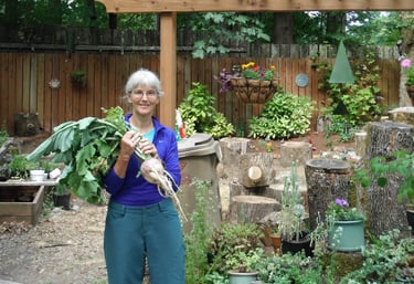 In the photo to the right is my beloved wife, Caroline. She grows things, especially plants, nurtures animals, especially our five Nigerian Dwarf Goats, seven ducks, 20 chickens (who really knows how many chickens they move fast!), and our dog Schatzie. She also helps storytellers grow, ever a perceptive and careful listener to stories and willing to offer feedback when it is desired. She is my rock!