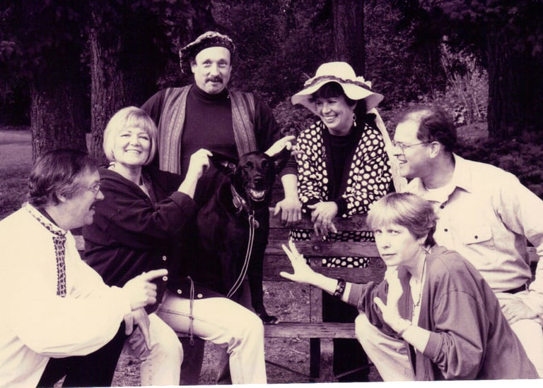 I am honored to be a Founding Member of The Portland Storytellers' Guild. Eight of us founded it in 1985 - and we're still going! Pictured L to R: Ken Iverson, Barb Fankhauser, Roger Coles, Maureen Pedone, Ned Leager (not a founding member but host of a KBOO storytelling radio show) and Sarah Stein.