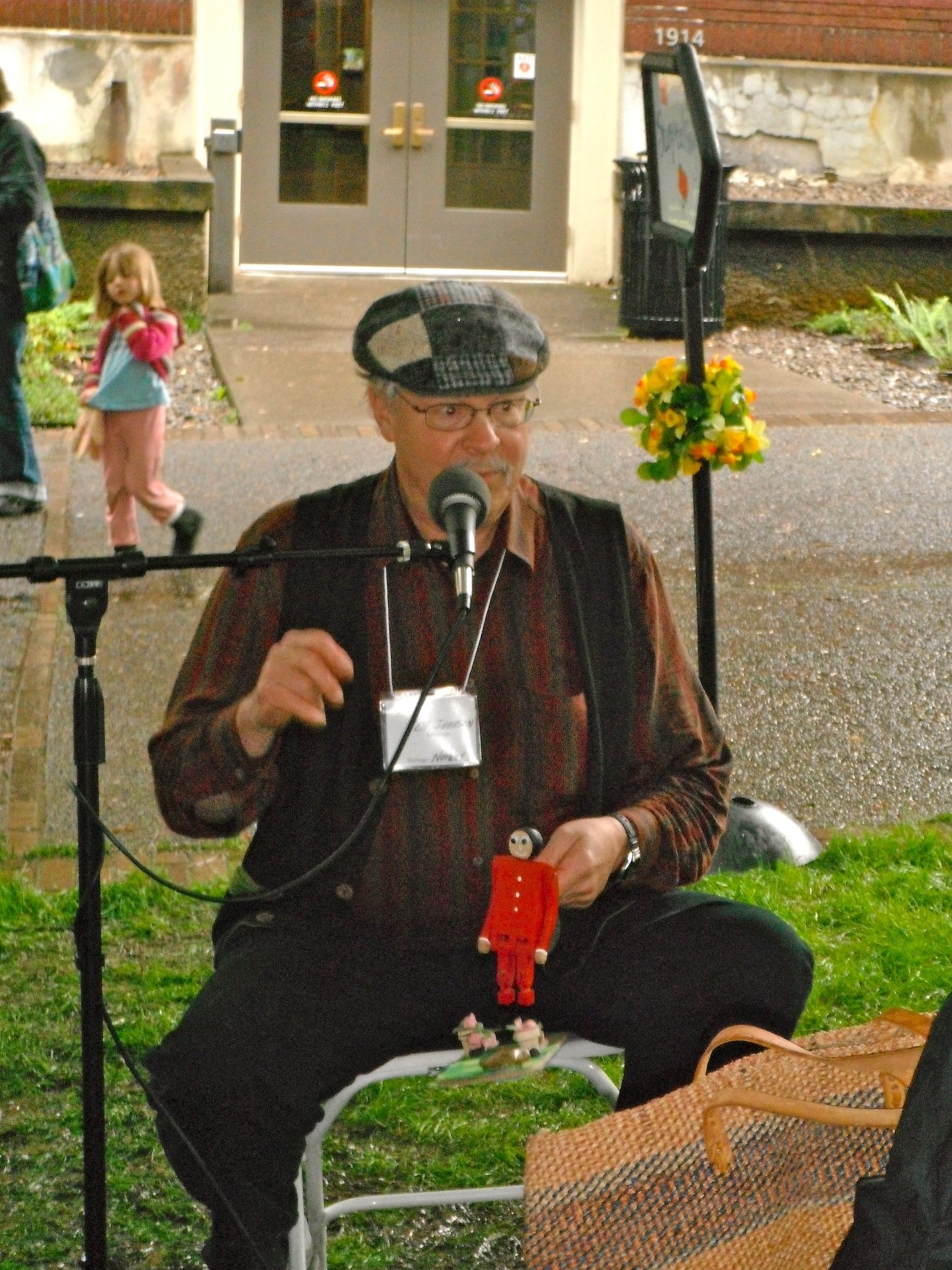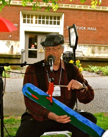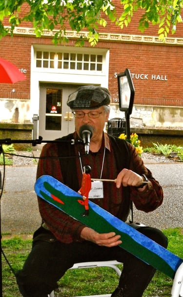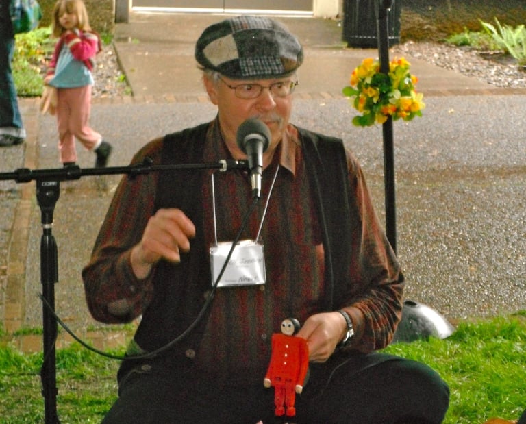 Unique stories crafted from folklore, myths, and personal experiences. I've had fun telling The Gingerbread Man with a Limberjack (an Appalachian folk instrument, a wooden man in this case, though Limberjacks can take many forms. They are held on a stick and they dance on a board (in the photo I'm sitting on the thin dancing board).